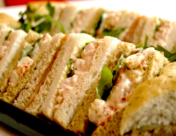Our sandwich platter seafood offers smoked salmon with cream cheese and tuna mayo sweet corn. Platter consist 24 quarters and serve 5 to 6 people.